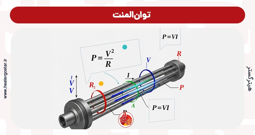 فرمول محاسبه توان المنت با ولتاژ و مقاومت (P = V²/R)